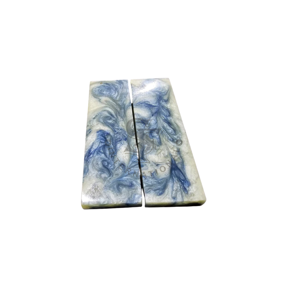 Blue with White Shades Epoxy Resin Knife handle Scales