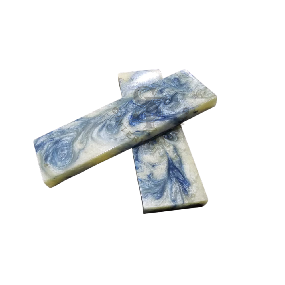 White Pearl with Blue Shades Epoxy Resin Knife Handle Scales